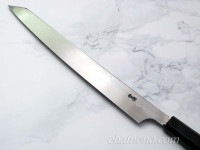 独特の形状をした「剣型柳刃」は、通常の柳刃包丁の、ワンサイズ上の物の先端を落として、厚みと重量を持たせた包丁で、腰があります。