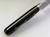 美しく鏡面研ぎされた、45層ダマスカスの刀身は、使いやすい三徳型です。