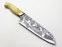 切れ味を重視して作られた白紙多層鋼の刀身に、桜の花を散らしたようなボカシを入れた魅力溢れる包丁です。