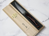 全長:227mm、刃渡り:100mm、刃幅:23mm、刃厚2mm、重さ:65g、刃材:VG-2・VG-10コアレスダマスカス鋼、両刃、ハンドル:ラミネートウッド