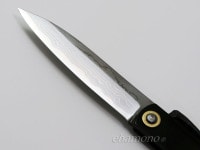 16層になった多層鋼の間に青紙を割り込んだ刀身を、通常の肥後守と違い、鋭い笹刃型に研ぎ、きれいに磨き上げた特別仕様の肥後守です。