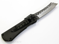 裏:一般的な肥後守と同じ両刃造りです。 軽くて丈夫なカーボンファイバーのハンドルにはクリップが着いています。