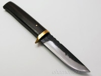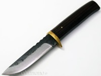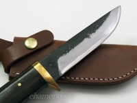 やや長めのハンドルには縞黒檀を使用、小型ながらシンプルで力強いナイフです。
