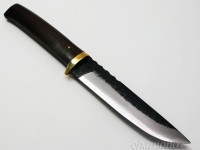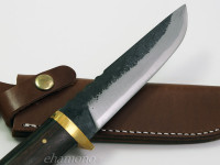 やや長めのハンドルには縞黒檀を使用、シンプルで力強いナイフです。