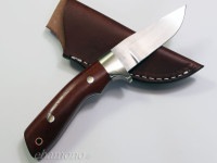 全長195mm、刃長70mm、刃厚約3.8mm、刃幅25mm、重さ161g、8Aステンレス鋼、ハンドル:ココボロウッド、革ケース付