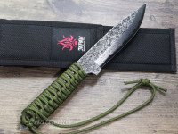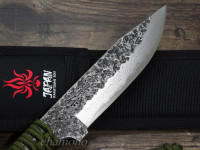 全長255mm、刃長120mm、巾30mm、身厚4.6mm、重さ約200g、鋼:青紙2号(ダマスカス15層)、ナイロンケース付