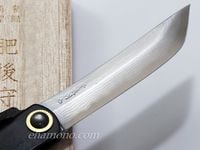 全長175mm、刃長75mm、身厚3.5mm、刃幅14.3mm、重量62g、多層鋼青紙割込、両刃、桐箱入り